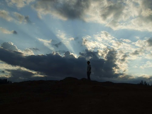 The sun just wants to burst out from over those clouds and reveal to us the face of the one standing there.